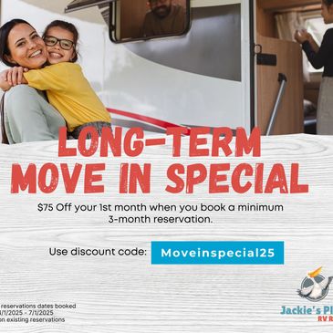 Book your perfect spot ...Monthly Rates starting at $450* or stay in one of our Six New Cabins